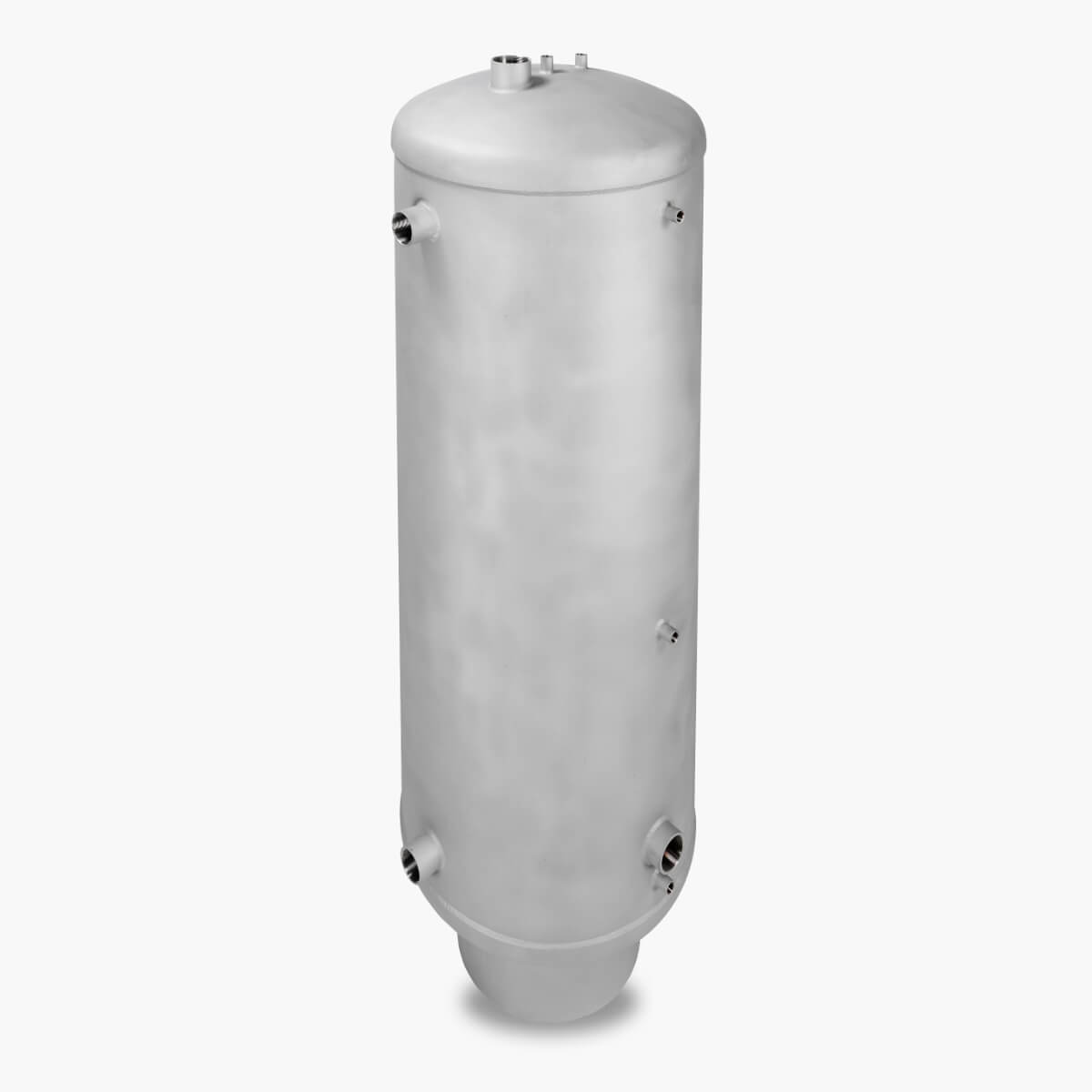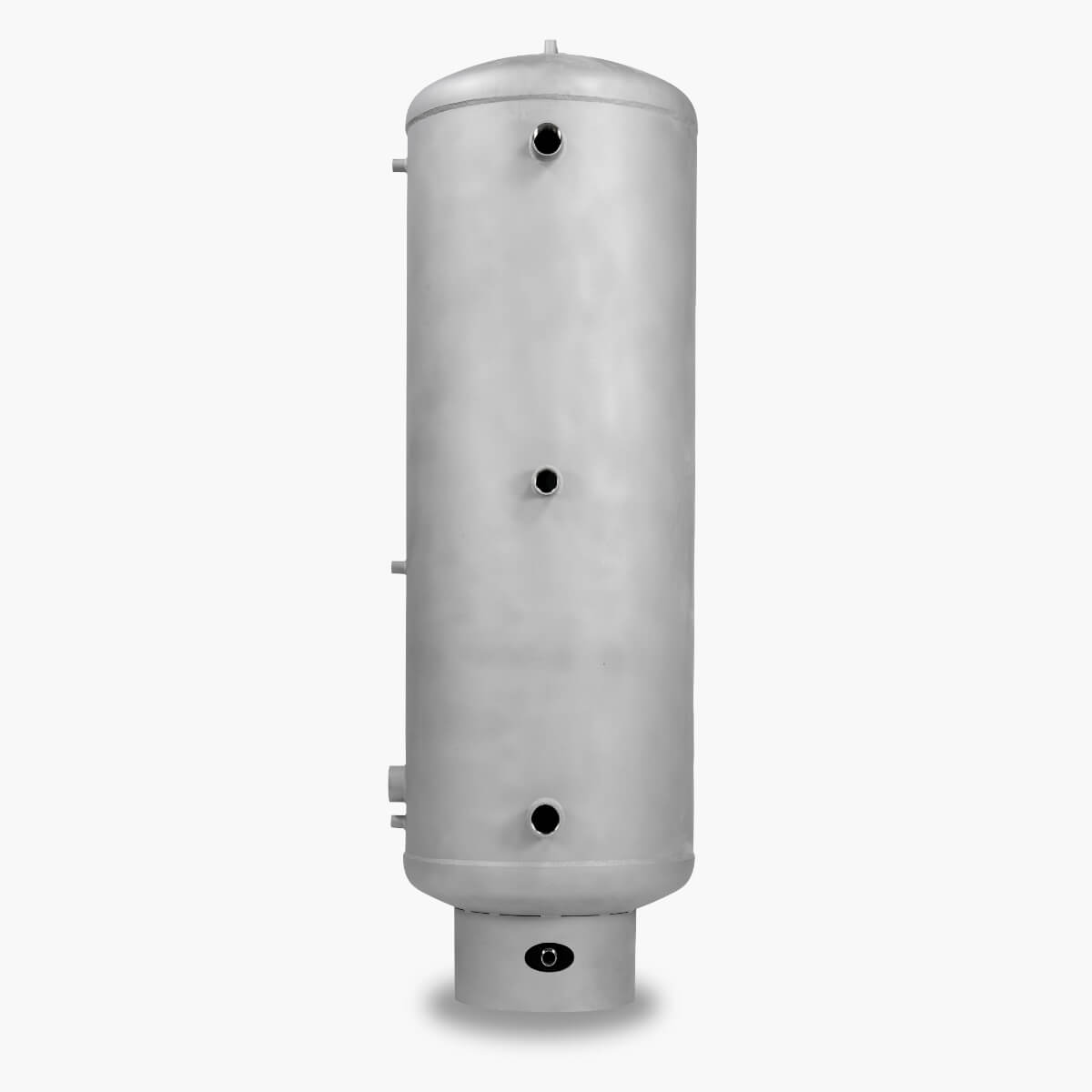 FlexEJ 250L DHW Buffer Vessel in 316 Stainless Steel for commercial domestic hot water systems. DN50 system connections with internal sparge pipes to reduce mixing. Uninsulated. Manufactured in our factory in the UK. Contact sales for different sizes, connections and selection advice – we will be pleased to quote any buffer size or configuration you may require –