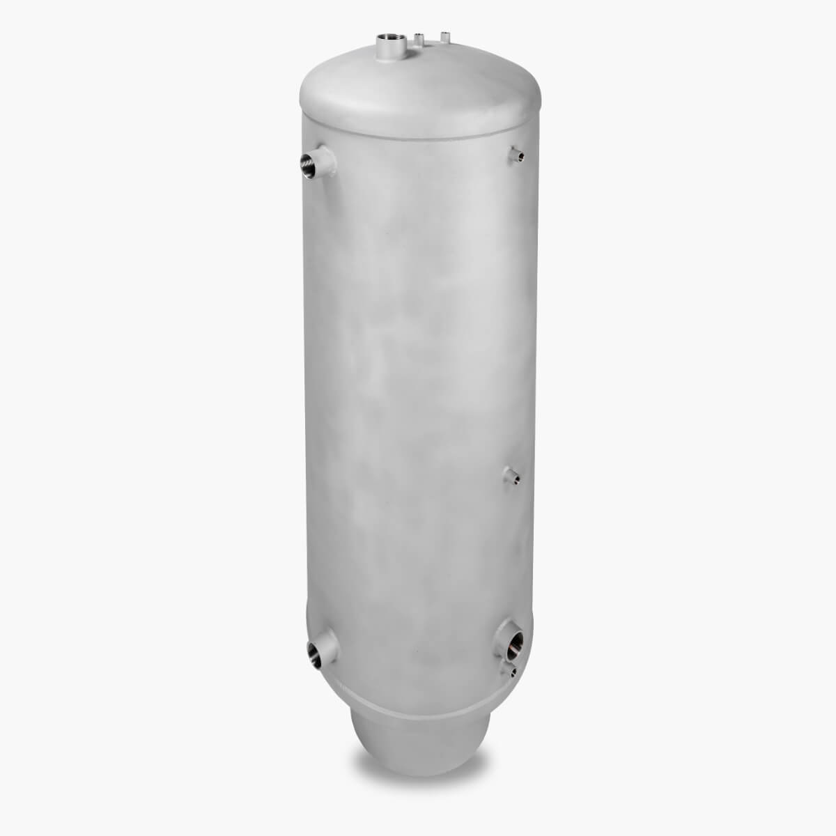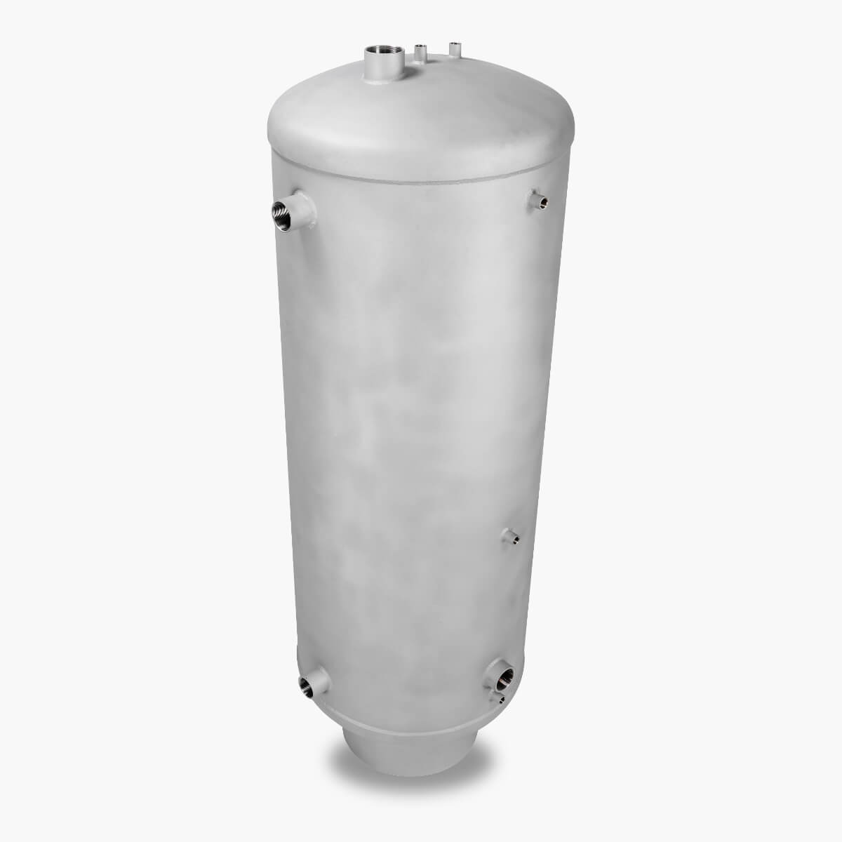 FlexEJ 500L DHW Buffer Vessel in 316 Stainless Steel for commercial domestic hot water systems. DN50 system connections with internal sparge pipes to reduce mixing. Uninsulated. Manufactured in our factory in the UK. Contact sales for different sizes, connections and selection advice – we will be pleased to quote any buffer size or configuration you may require –