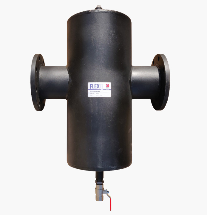 DN150 FlexEJ Dirt separator for HVAC systems with vent plug plus DN25 drain valve. Manufactured in our factory in the UK.