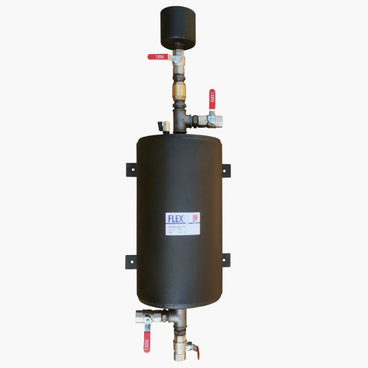 FlexEJ 25L Chemical dosing pot for HVAC systems with mini ball valve vent and filling tundish plus NRV. Manufactured in our factory in the UK. Contact sales for stainless steel versions and different capacities.