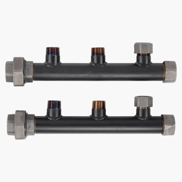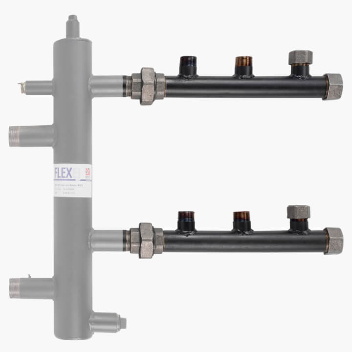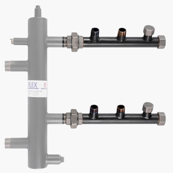 DN32 FlexEJ Horizontal Headers – 3 Port Manifolds – for connecting multiple HVAC circuits to our LP Low Loss Header. Port size DN25, supplied with 1x each union, end and port caps. Manufactured in our factory in the UK. Contact sales for different connections and selection advice – we will be pleased to quote any manifold size or configuration you may require.