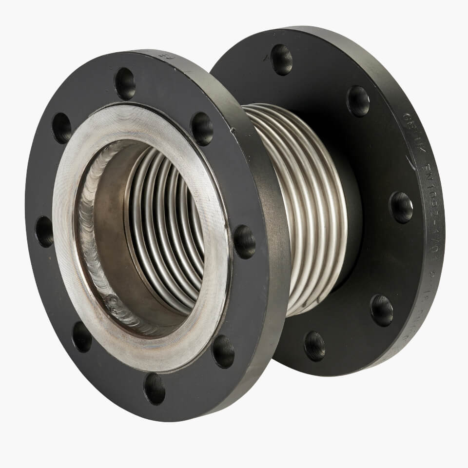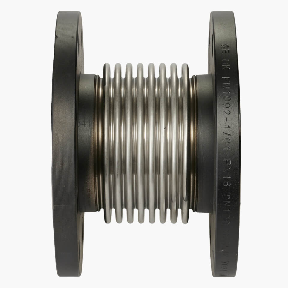 DN100 FlexEJ flanged pipe expansion joint with 321 stainless steel bellows for axial movements. High quality bellows calculated to EJMA. Contact sales for our full range of standard and manufactured to order industrial expansion joints.