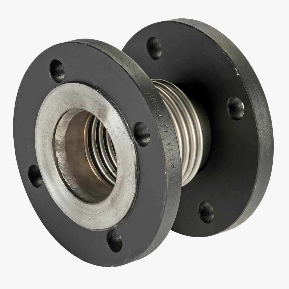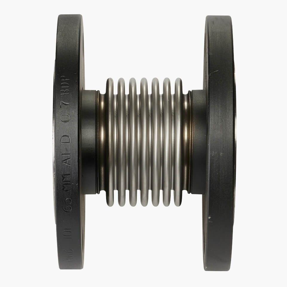 DN65 FlexEJ flanged pipe expansion joint with 321 stainless steel bellows for axial movements. High quality bellows calculated to EJMA. Contact sales for our full range of standard and manufactured to order industrial expansion joints.
