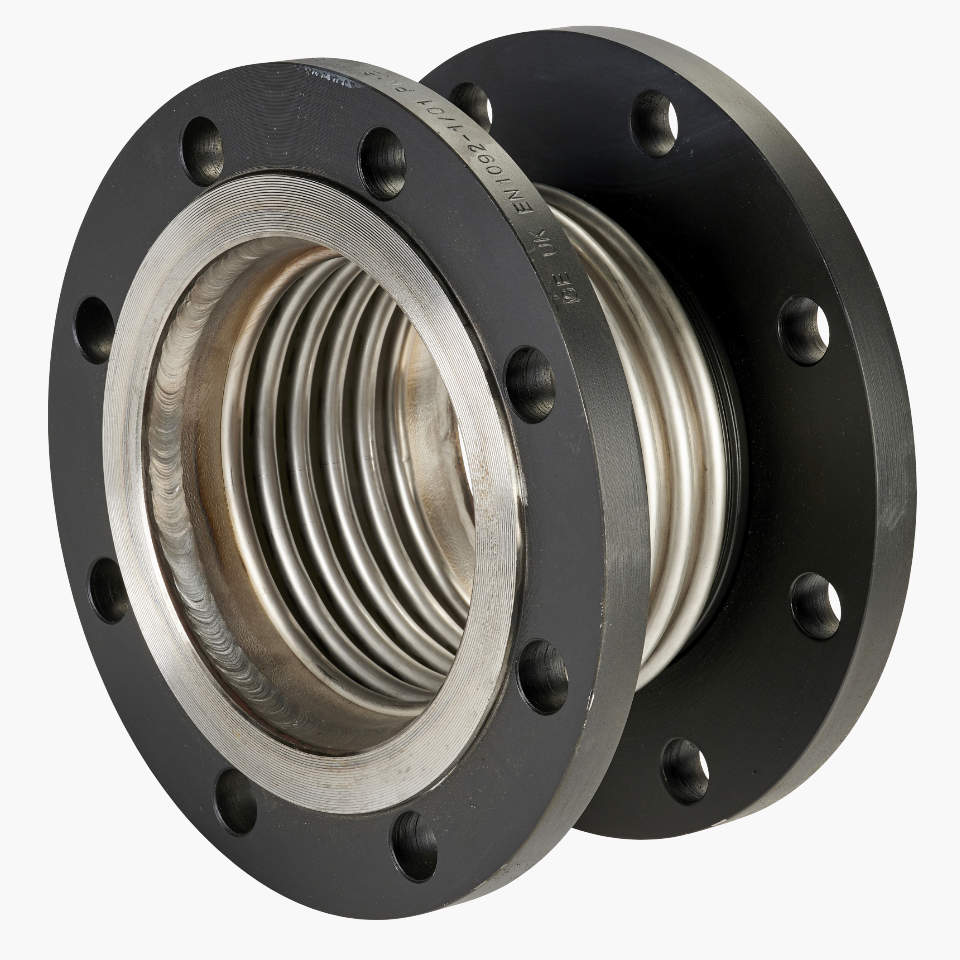 DN150 FlexEJ flanged pump expansion joint with 321 stainless steel bellows for lateral movements. High quality bellows calculated to EJMA. Contact sales for our full range of standard and manufactured to order industrial expansion joints.