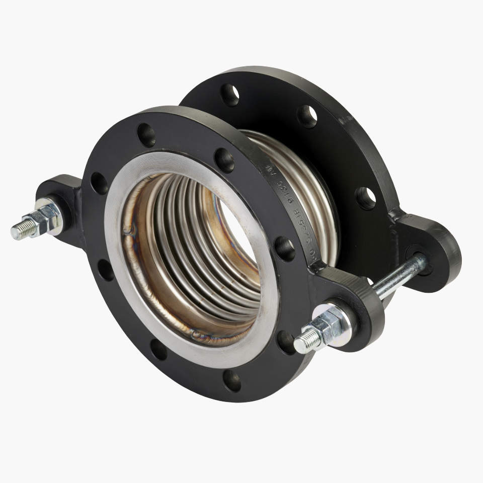 DN150 FlexEJ flanged tied pump expansion joint with 321 stainless steel bellows for lateral movements. High quality bellows calculated to EJMA. Contact sales for our full range of standard and manufactured to order industrial expansion joints.