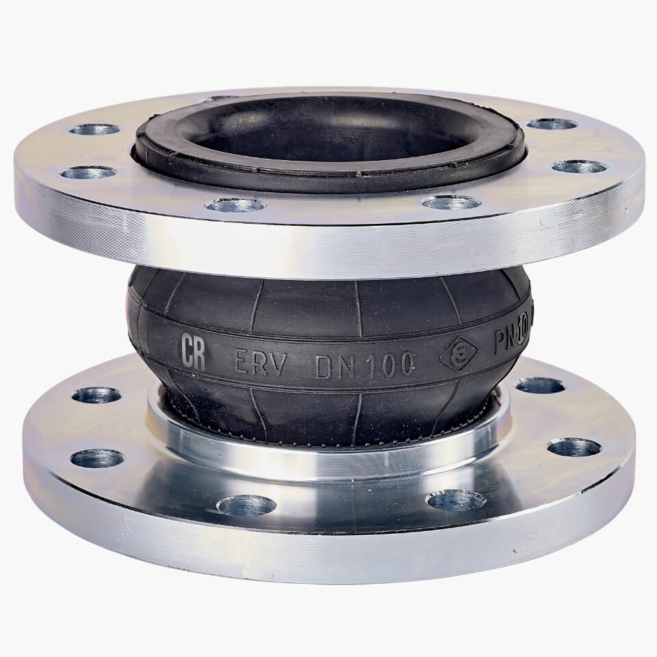 DN100 Elaflex Flanged Rubber Bellows – BlackBand – Chloroprene – oily or inhibited water, sea water, grease, compressed air – for pipe expansion, misalignment and vibration. Very high quality rubber bellows made in Germany. Contact sales for our full range of flanges, rubber types and lengths for Elaflex rubber bellows.